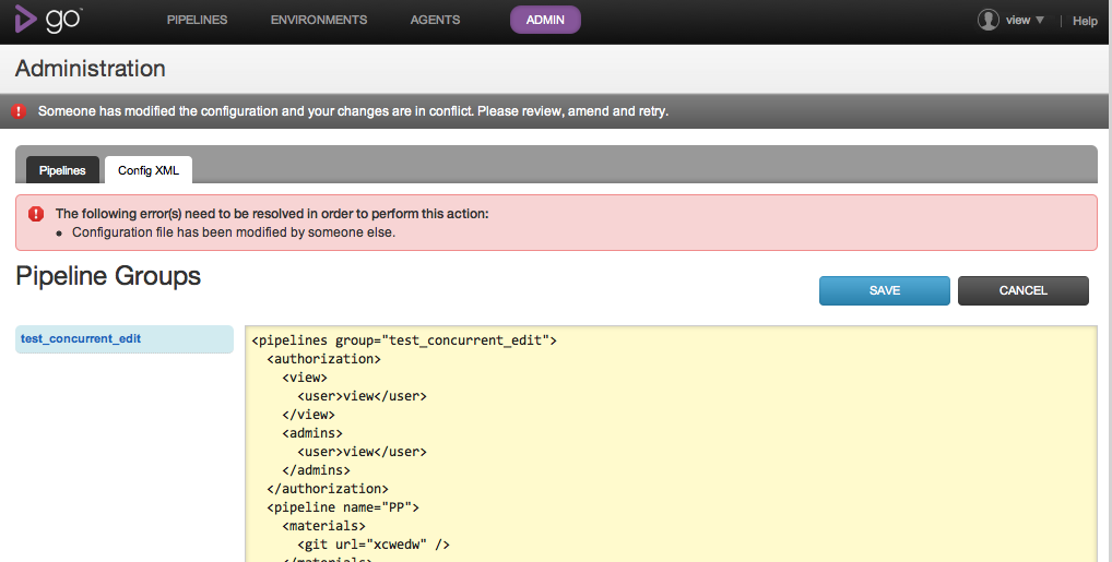 Handling conflict while using Config XML tab (GoCD Administrator)